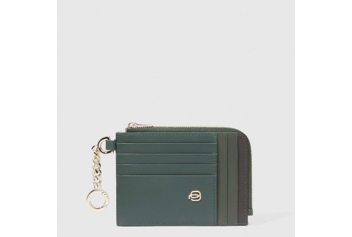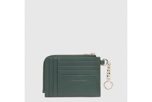 PIQUADRO Portamonete donna con portachiavi. Portamonete con porta documenti e porta carte di credito con protezione anti frode RFID e catenella porta chiavi.