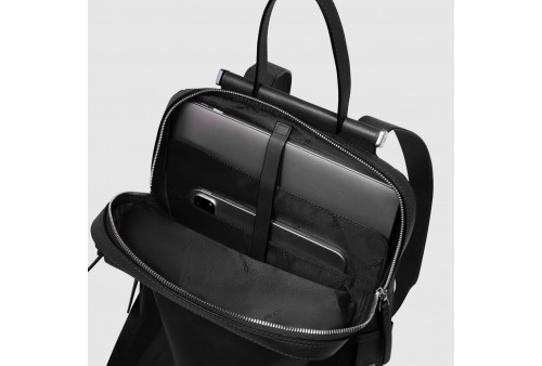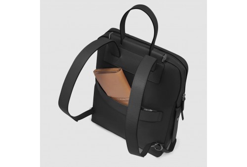 PIQUADRO Zaino donna porta pc 14". Zaino donna porta PC e porta iPad® in tessuto riciclato e pelle con protezioni antiurto e RFID