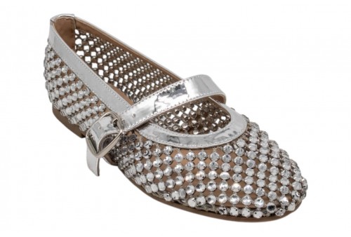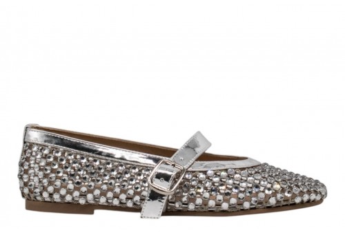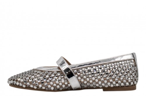 ALMA EN PENA BALLERINA CON STRASS V261255 SILVER. Questa ballerina, decorata con strass scintillanti, è perfetta per un look raffinato senza rinunciare alla comodità. La punta arrotondata conferisce un look classico, mentre la chiusura con fibbia assicura una calzata sicura e personalizzata.