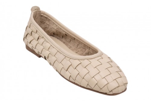 ARIA SHIES BALLERINA E201 crema. Ballerina flat realizzata in pelle con lavorazione intrecciata.