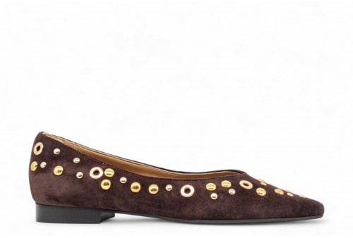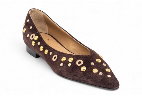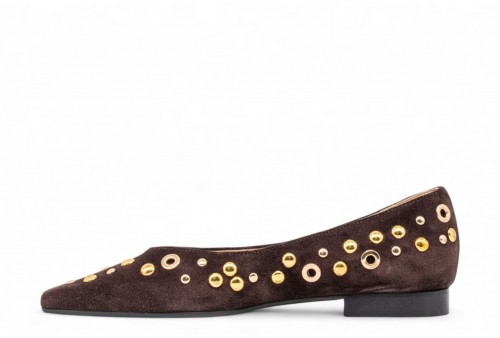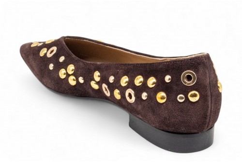 WO MILANO BALLERINA BORCHIE 411. Ballerina a punta realizzata in camoscio con borchiette. colore: caffe