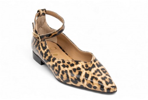 WO MILANO BALLERINA LEO 412. Ballerina a punta realizzata in vernice stampa leopard. colore: leo