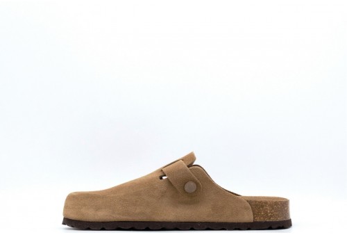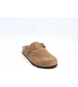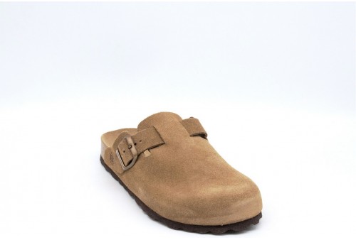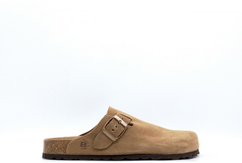 BIOLINE SABOT. Sabot con tomaia in pelle scamosciata lavorato senza cuciture. Regolabile, con cinturino dotato di fibbia in metallo. Plantare dalla forma anatomica in gomma-sughero, suola in EVA a cellule chiuse resistente alla corrosione, all'acqua di mare, agli oli e ai grassi, non inquinante, resiliente e resistente alla trazione, shock buona ammortizzazione. Un modello classico della collezione BIOLINE® che si porta tutto l'anno, in molti casi anche al posto delle scarpe.