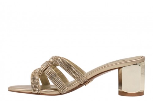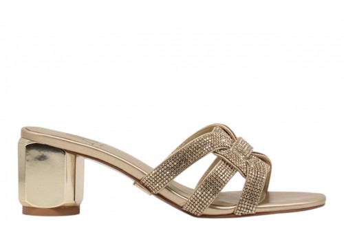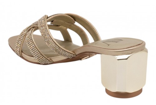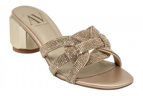 ALBANO VANITY AV7018 mules PLATINO. Mules con fasce ricoperte di strass. Tacco a blocco effetto specchiato.