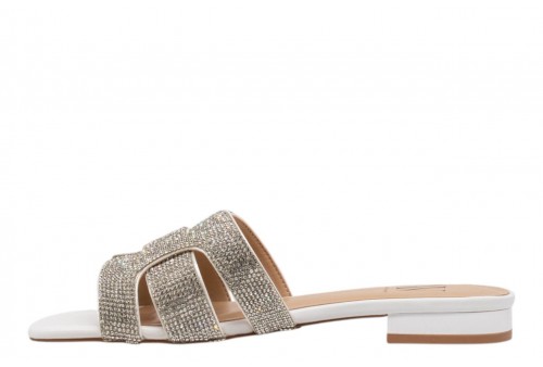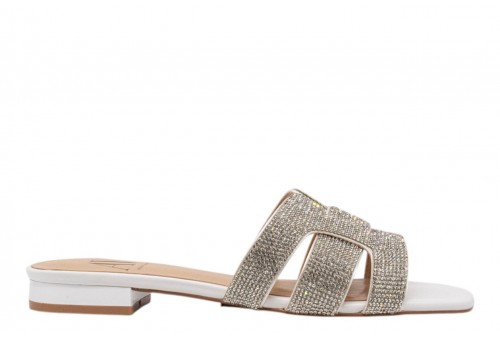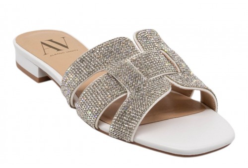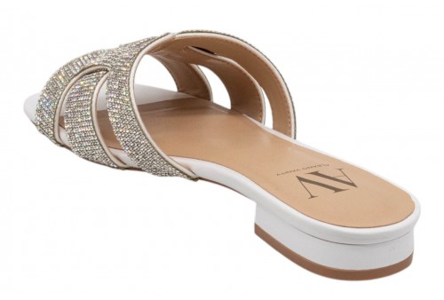 ALBANO VANITY AV7028 ciabatta strass BIANCO. Ciabattina flat elegante con fasce ricoperte di strass.