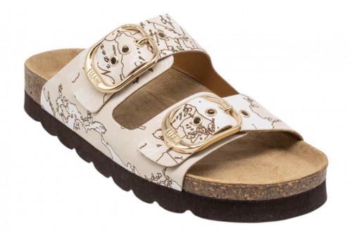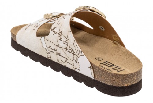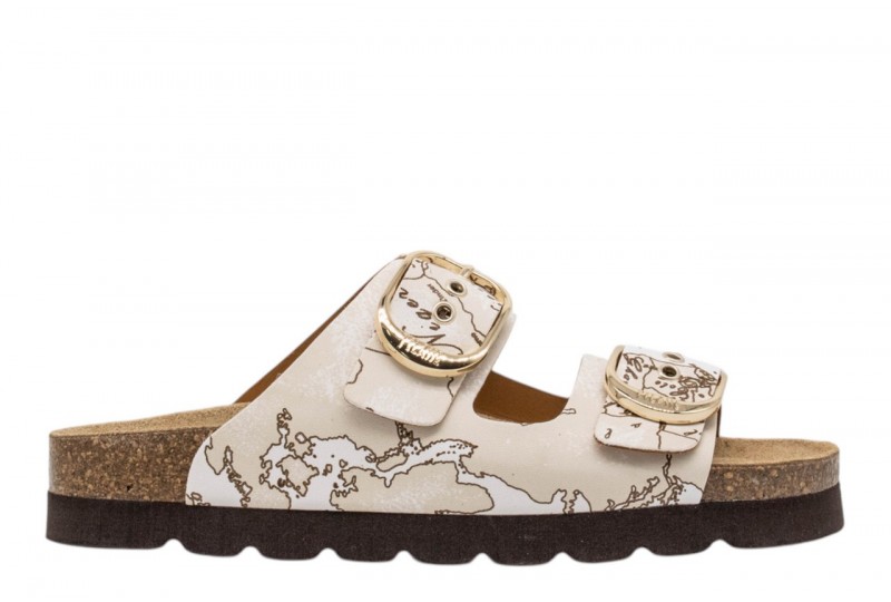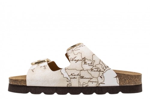 ALVIERO MARTINI CIABATTA 1422/9752/0900 WHITE. Modello daily immancabile nella stagione calda, i sandali con sottopiede comfort sono interpretati nell'estetica del brand attraverso il tessuto effetto nappa stampa Geo. Illuminati dalle fibbie logate oro chiaro, sono una soluzione versatile e distintiva, perfetta per esprimere lo stile unico di 1' Classe con ogni passo.