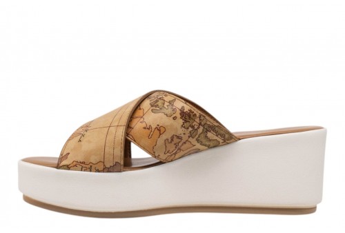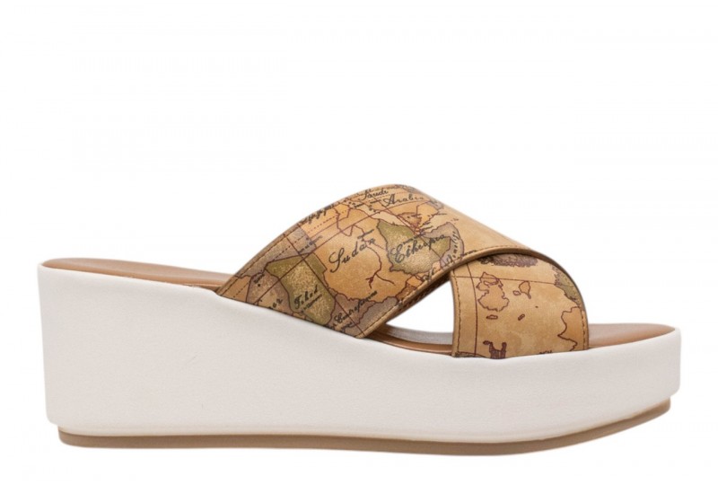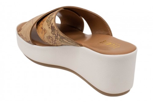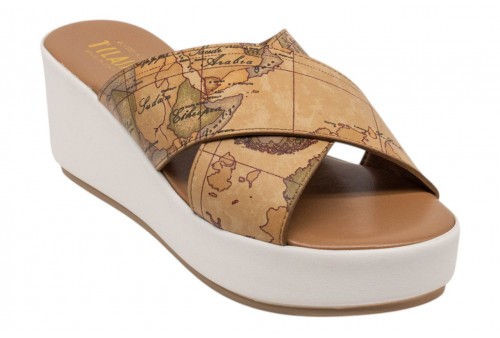 ALVIERO MARTINI sandalo scalzato 1413/9820/00010 natural co. L'iconica stampa Geo Classic è tutto ciò che serve a questi sandali zeppa in tessuto effetto nappa per renderli originali ed esclusivi. Un modello quotidiano versatile negli abbinamenti, da abbinare a gonne in denim e pantaloni casual creando look sempre unici.