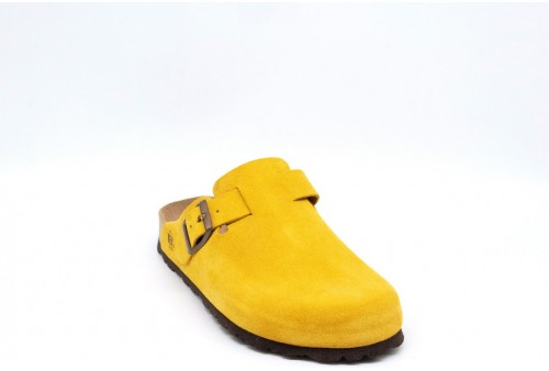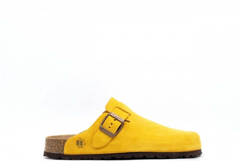 BIOLINE SABOT. Sabot con tomaia in pelle scamosciata lavorato senza cuciture. Regolabile, con cinturino dotato di fibbia in metallo. Plantare dalla forma anatomica in gomma-sughero, suola in EVA a cellule chiuse resistente alla corrosione, all'acqua di mare, agli oli e ai grassi, non inquinante, resiliente e resistente alla trazione, shock buona ammortizzazione. Un modello classico della collezione BIOLINE® che si porta tutto l'anno, in molti casi anche al posto delle scarpe.