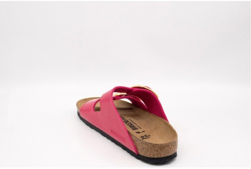 BIRKENSTOCK Arizona Big Buckle 1027828 fuchsia. BIRKENSTOCK Arizona è un vero classico che entusiasma da decenni uomini e donne con il suo design senza tempo. Questo delicato classico con due cinturini è sinonimo di design intramontabile ed è divenuto già da tempo una comodissima scarpa di culto. La tomaia è in Birko-Flor®, un materiale sintetico resistente all’usura e delicato per la pelle, ed è caratterizzata da una brillante finitura laccata.
