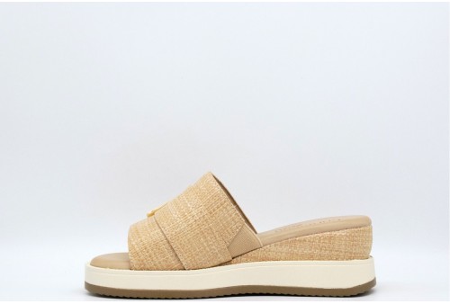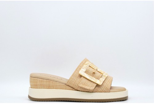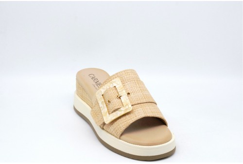 CARMELA Sandalo con zeppa. Sandalo con zeppa realizzato in pelle con fascia larga decorata con maxi fibbia.