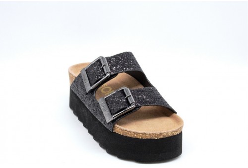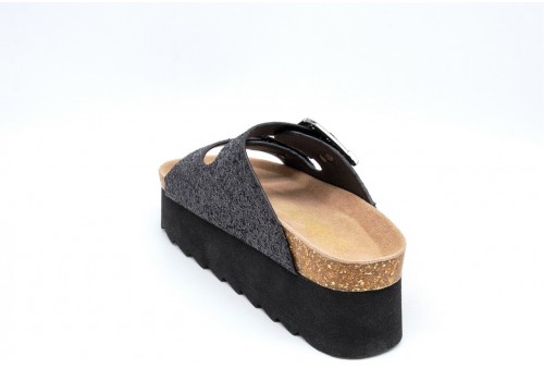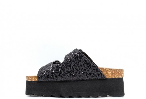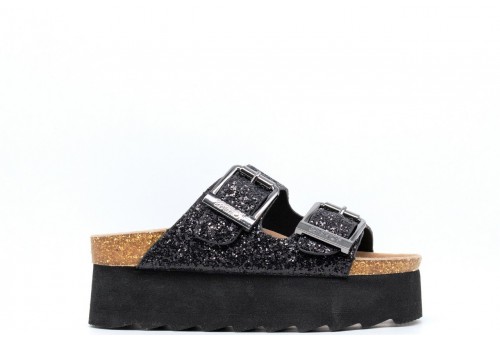 COLORS OF CALIFORNIA CIABATTINA PLATFORM. La stagione estiva punta in alto e fa svettare con platform confortevoli e molto grintose. Questo modello ha la tomaia glitterata e le fibbie logate a contrasto sono in metallo. La platform è leggera e molto sinuosa, perfetta per chi ama la comodità senza rinunciare all'altezza. Ideali con abiti lunghi, leggeri e ampi o con pantaloni palazzo mixati ad accessori sporty chic. Il duo chrome di tomaia e platform crea un affascinante contrasto con la suola interna, creando così un irresistibile mood estivo.