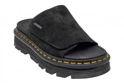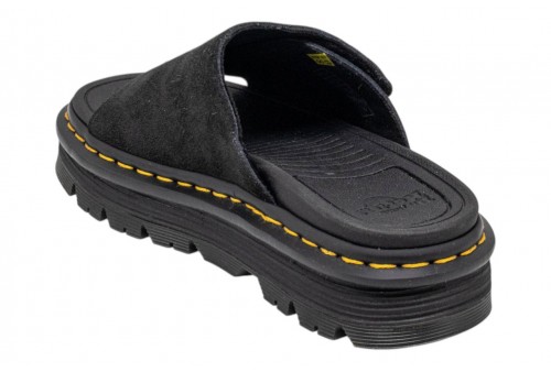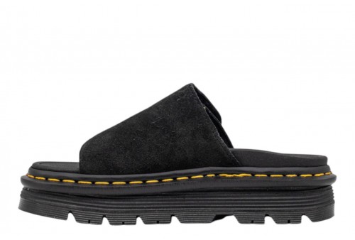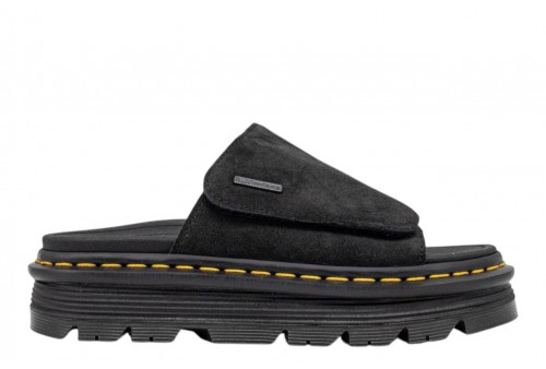 DR. MARTENS donna sandalo 42409201 ZEBZAG slide black. Relax in stile Doc's. Una silhouette che fonde insieme comodità e funzionalità. Realizzati in camoscio EH Suede, poggiano su una suola fumé DMS ibrida con cuscinetto d'aria che unisce morbida EVA e robusti inserti PVC per offrirti qualche centimetro in più d'altezza e completa stabilità. Con cinturino regolabile per una calzata sicura, il modello è rifinito con le nostre caratteristiche cuciture gialle e una pura anima ribelle firmata Dr. Martens.