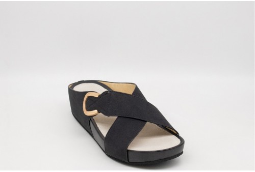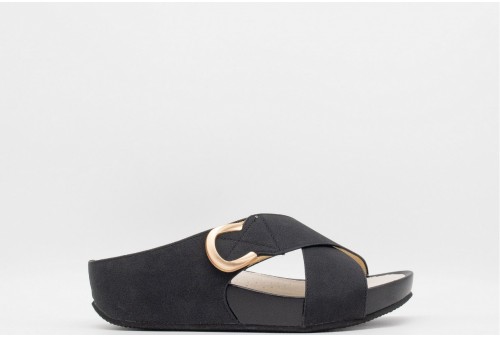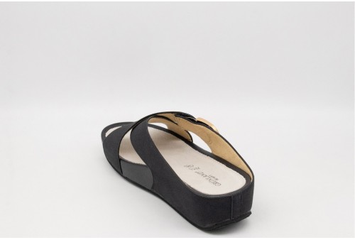 GRUNLAND Ciabatta super ammortizzante DIRA. Ideale per dare sollievo ai piedi stanchi. Impreziosita da maxi applicazione, possiede una leggera zeppa per slanciare e sostenere la camminata. Il sottopiede Re-Soft ammortizza l’impatto al suolo e memorizza la forma del tuo piede.