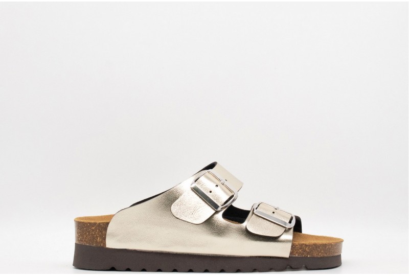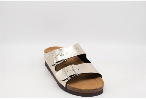 GRUNLAND SANDALO CON FIBBIE HOLA. Una ciabatta a due fibbie dalla linea raffinata e con una zeppa bassa in microporosa. Leggerissima e flessibile, nasconde un sottopiede formato da un sottile strato di vera pelle che ricopre un cuore morbido in memory foam. Sollievo immediato per i tuoi piedi.