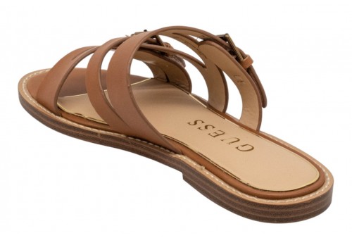 GUESS CIABATTA FLJGRYLEA03 GRAYDEN brown. Ciabattina flat realizzata in vera pelle con fascette con fibbie regolabili. Plantare leggermente imbottito.