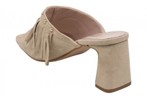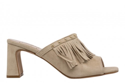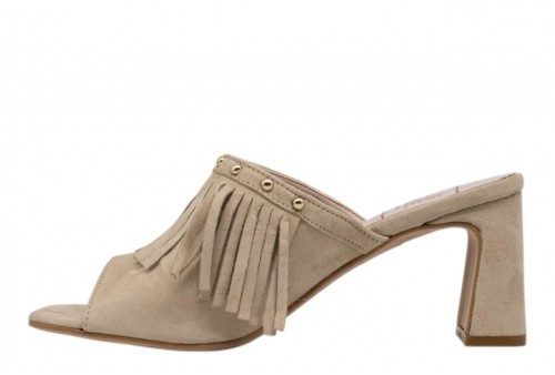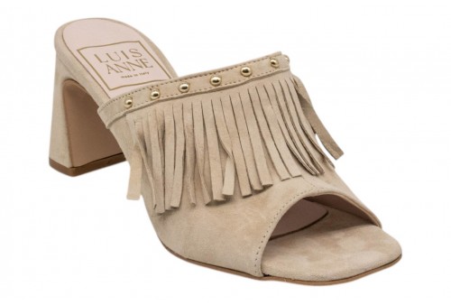 LUISANNE sabot 3900/05 CAMOSCIO BEIGE. Sabot realizzato in camoscio beige caratterizzato da frange e borchiette. Tacco a blocco.