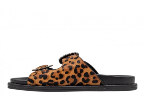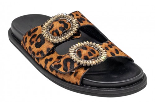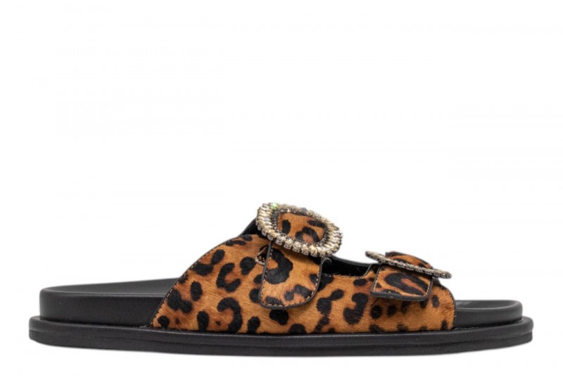 NOA HARMON ciabatta SELVA 10322P-M55 leo. Ciabattina realizzata in pelle leopard con accessorio gioiello frontale. Doppia fascia.