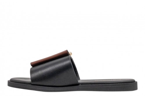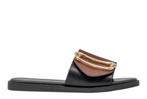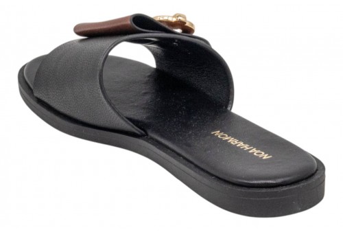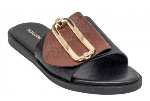 NOA HARMON ciabattina 9979-67 GRAPE BLACK-CUERO . Ciabattina in pelle con fascia larga bicolore, fibbia dorata a contrasto. Sottopiede in cuoio. Fondo in gomma.