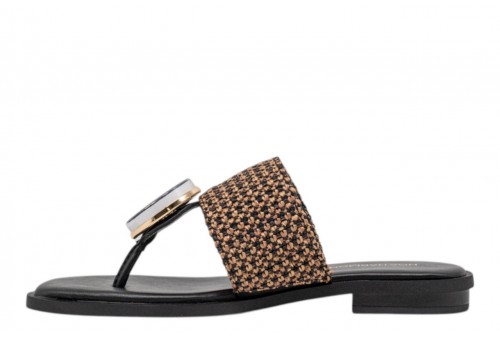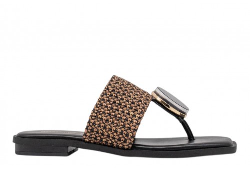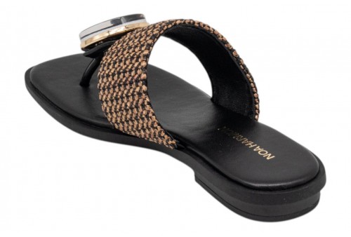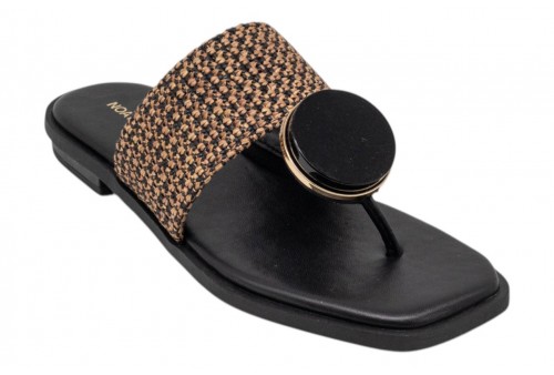 NOA HARMON CIABATTINA MARGOT 10285-67 BLACK-CUERO. Ciabattina infradito realizzata in pelle con accessorio frontale. Fascia in tessuto intrecciato bicolore.