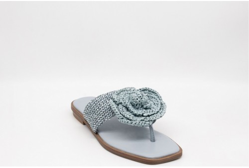 NOA HARMON SANDALO ACACIA. Sandalo infradito con fascia in rafia e fiore decorativo. Sottopiede in cuoio. Tacco 2 cm. Fondo in gomma. COLORE: BLUE