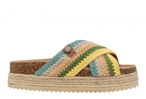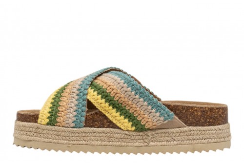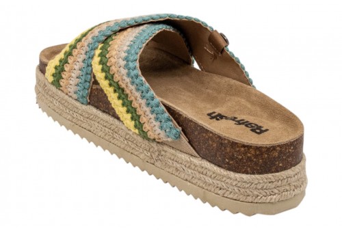 REFRESH donna ciabatta 175014 S.TEX ACQUA. Sandali da donna, del marchio Refresh. Fatto di tessuto in una combinazione di colori. Progetto di due cinghie incrociate. Pianta bios confortevole. Il pavimento circondato da juta intrecciata. Con suola in gomma a coste.