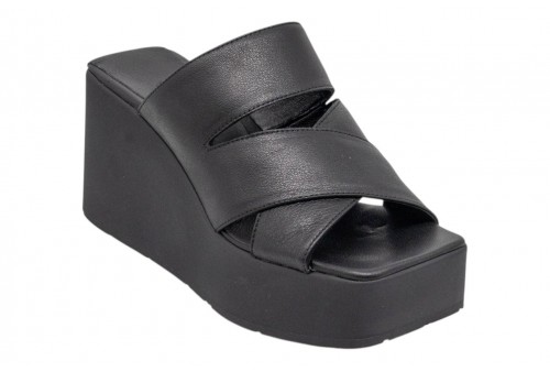 VIC MATIE' 1K5450D_K10C0700101 Mules con zeppa BLACK. Mules con zeppa, realizzato in pelle con fasce incrociate. Punta quadrata.