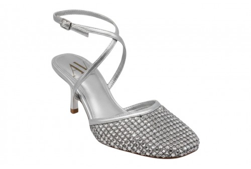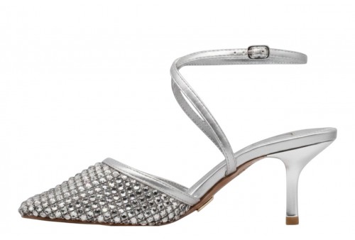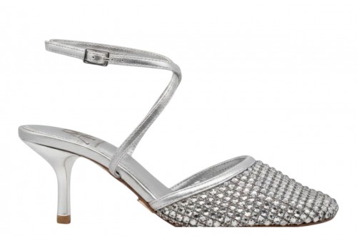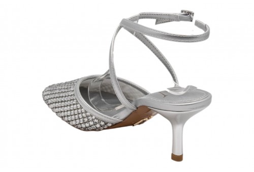 ALBANO VANITY AV7017 slingback SOFT ARGENTO. Slingback dalla punta tonda ricoperta di strass, dettagli in ecopelle effetto laminato. Chiusura con cinturino regolabile con fibbia alla caviglia.