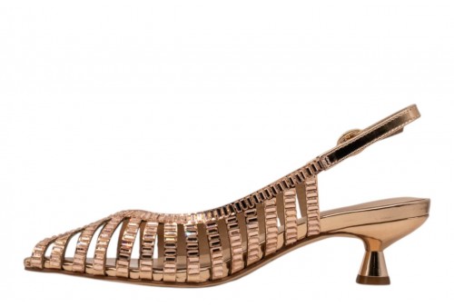 ALMA EN PENA slingback V265200 MIRROW ROSE. Slingback a punta con tomaia traforata impreziosita da cristalli. Chiusura con cinturino regolabile alla caviglia. Tacco a rocchetto.