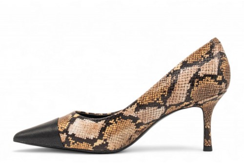 CHICONIC Decolletè a punta. Decolletè a punta realizzata in vera pelle stampa pitone con tacco sottile e sottopiede imbottito per un miglior comfort. COLORE: Pitone/nero