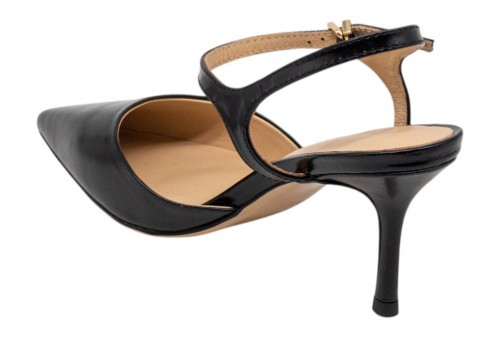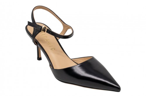 CHICONIC decollete 307.01.26VT.BLK VITELLO BLACK. Decollete a punta realizzata in pelle.Chiusura con cinturino regolabile alla caviglia. Fondo in cuoio con goccia antiscivolo.
