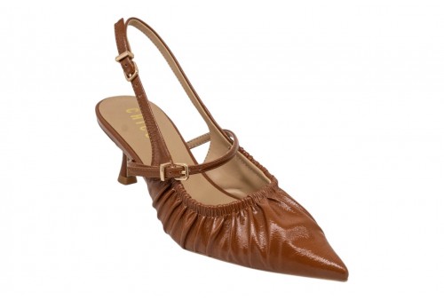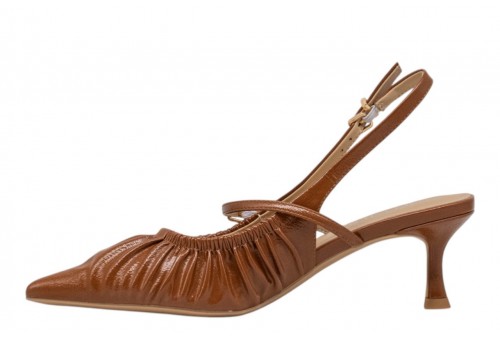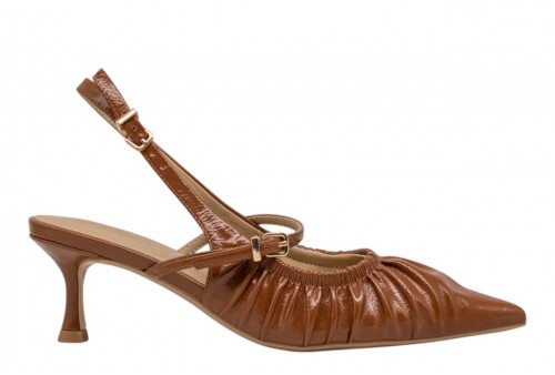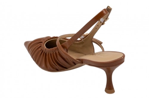 CHICONIC slingback 282.01.26P.CU NAPLAK CUOIO. Slingback a punta realizzata in pelle con effetto arricciato. Chiusura con cinturino regolabile alla caviglia.