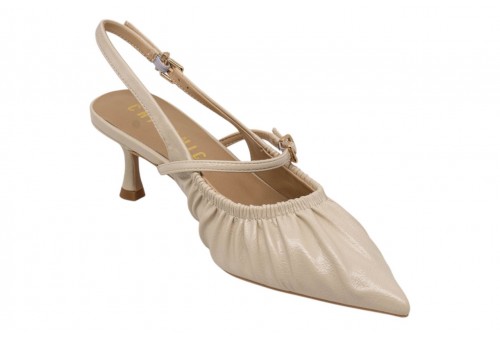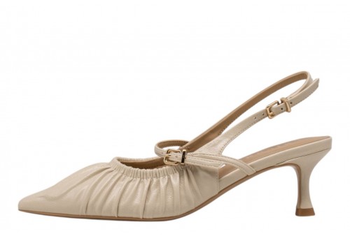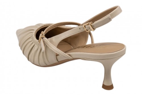 CHICONIC slingback 282.01.26P.nd NAPLAK nude. Slingback a punta realizzata in pelle con effetto arricciato. Chiusura con cinturino regolabile alla caviglia.