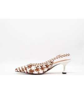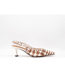 DONNA SERENA SLINGBACK INTRECCIATA. Slingback in pelle con lavorazione intrecciata. Tacco a rocchetto. Chiusura con cinturino con fibbia alla caviglia. COLORE: camel/white