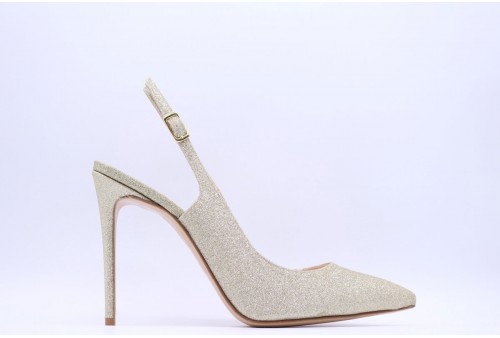 GIANMARCO F. Décolleté Glitter con fibbia, dalla forma affusolata e dal particolare rivestimento glitterato questa décolleté renderà ancora più unico e brillante ogni outfit indossato. Fondo in cuoio e calzata più comoda grazie alla fibbia sul retro che permette di essere adattata al piede.