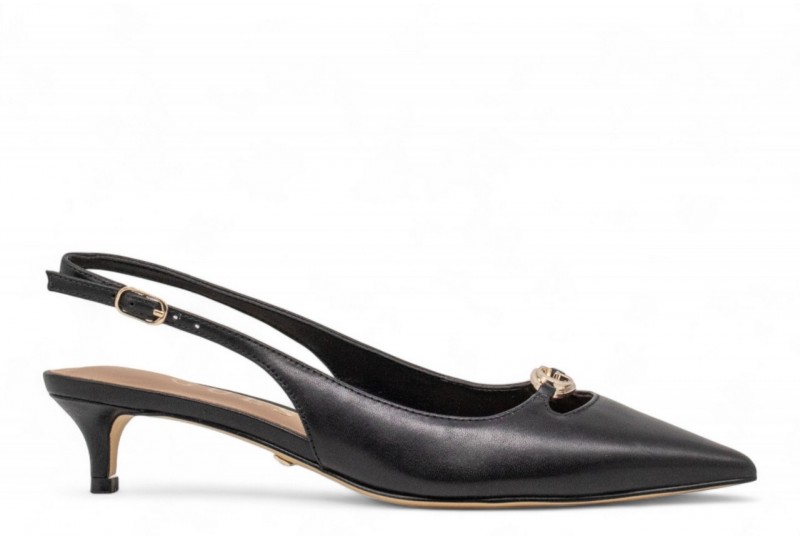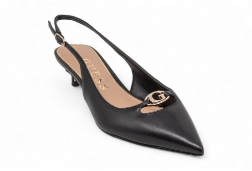 GUESS Sling back Jessah in vera pelle. Modello a punta.Chiusura con cinturino alla caviglia. Dettaglio scritta logo frontale. COLORE: BLACK