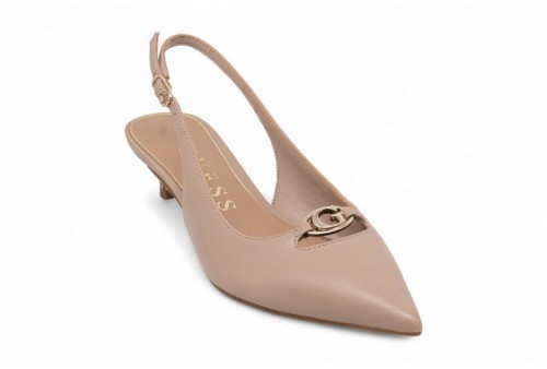 GUESS Sling back Jessah in vera pelle. Modello a punta.Chiusura con cinturino alla caviglia. Dettaglio scritta logo frontale. COLORE: nude
