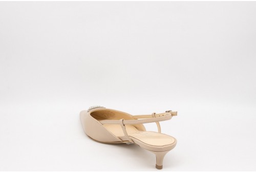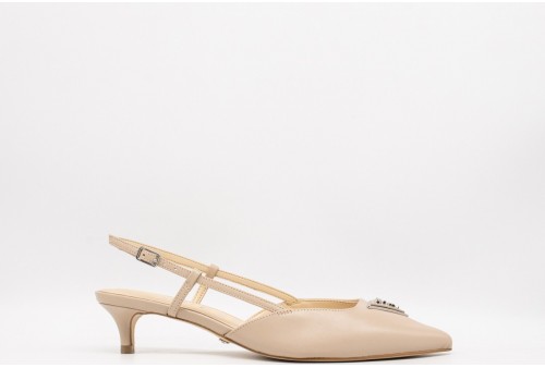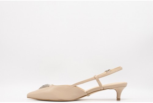 GUESS Sling back jesson vera pelle. Sling back jesson vera pelle, modello a punta. Dettaglio triangolo frontale, scritta logo su sottopiede e suola.