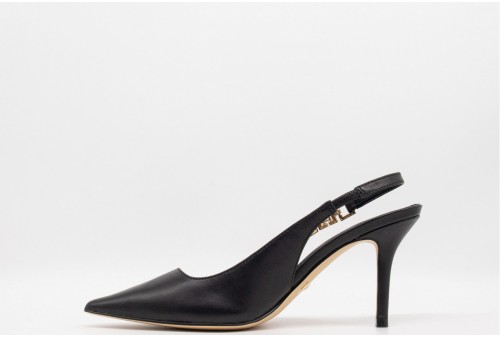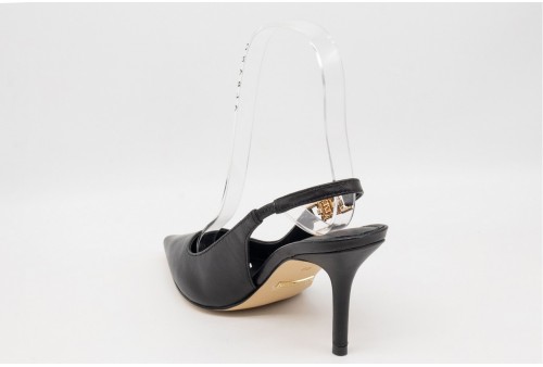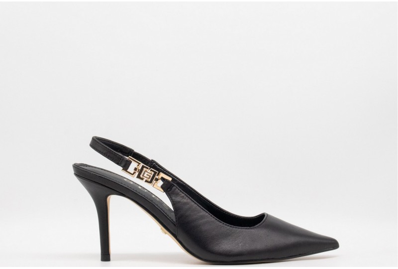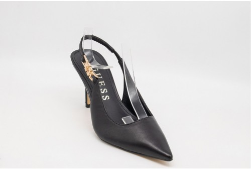 GUESS Sling Back Nassha. Sling back in pelle, modello a punta. Dettaglio su suola con scritta logo.