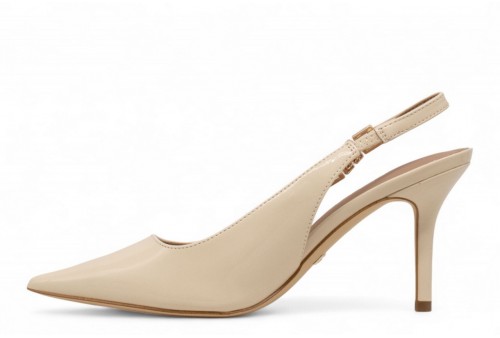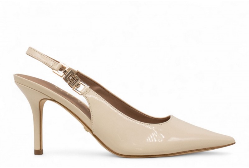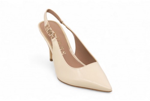 GUESS Sling back NASSHA in vernice. Modello a punta. Altezza tacco 8,5 cm. Chiusura con cinturino alla caviglia. Dettaglio scritta logo laterale. COLORE: cream