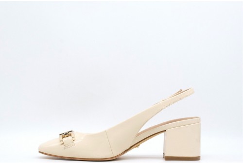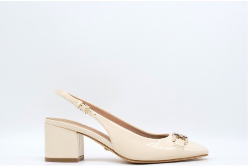 GUESS Slingback in effetto vernice. Punta tonda. Dettaglio frontale con scritta logo. Tacco a blocco.