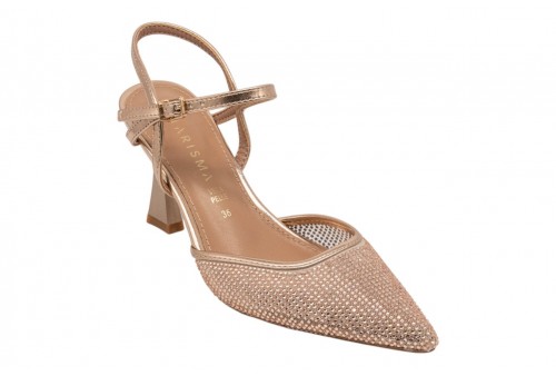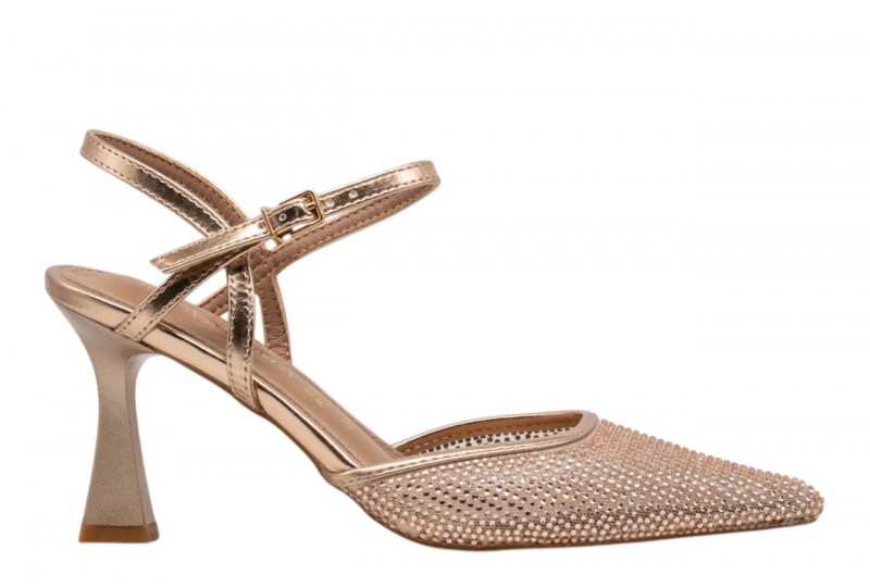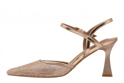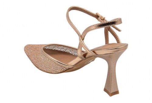 KHARISMA decollete 2148 RETE ROSA/ORO. Decollete a punta realizzata in PU impreziosita da micro strass. Chiusura con cinturino con fibbia regolabile alla caviglia che garantisce una calzata stabile e regolabile. Il tacco alto slanciato esalta la silhouette femminile.