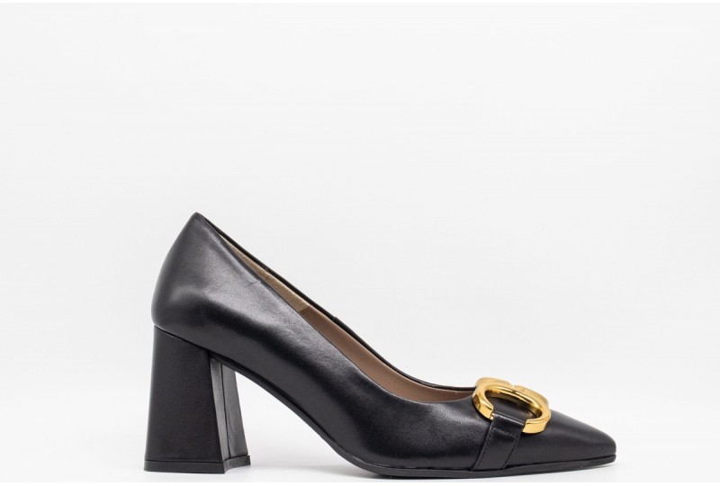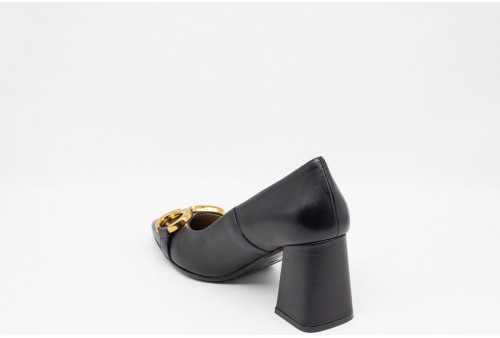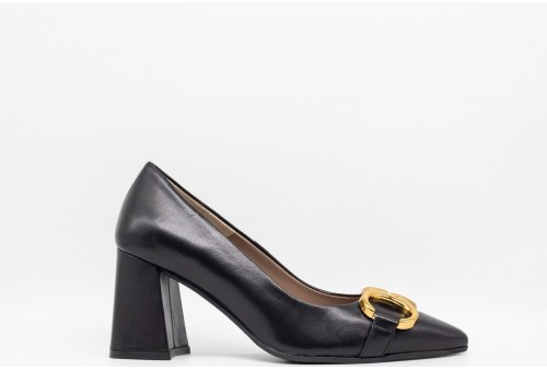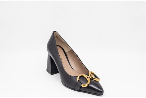 MELLUSO Décolleté donna in pelle. Décolleté donna caratterizzato da tomaia in pelle con catena sulla parte frontale e tacco a blocco.
