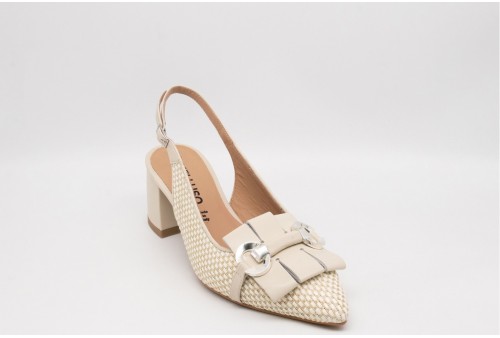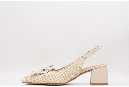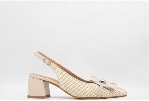 MELLUSO Décolleté donna slingback in pelle. Décolleté donna slingback in pelle e corda con tacco 5cm e cinturino alla caviglia.