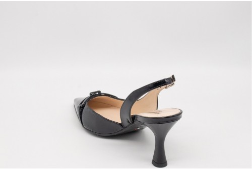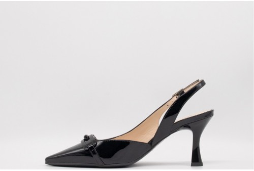 NERO GIARDINI Décolleté in Vernice. Le slingback NeroGiardini Premium Collection donano un'eleganza senza tempo agli outfit di ogni evento speciale. Decollete a punta realizzata in vernice. Dettaglio catena. Tacco a rocchetto.