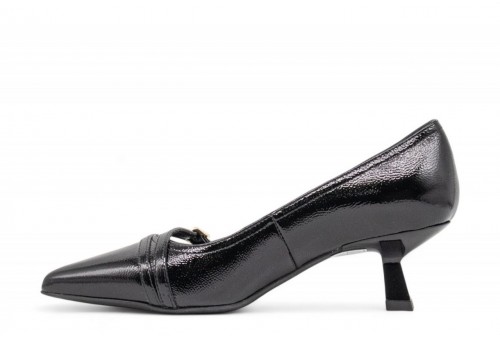 NERO GIARDINI decollete in naplak. Decollete a punta realizzata in pelle naplak. Caratterizzata da cinturino decorativo frontale. Tacco a rocchetto. COLORE: nero