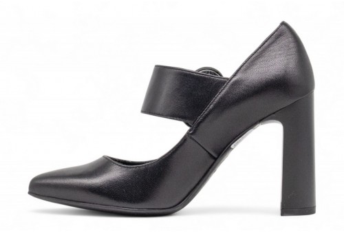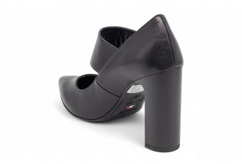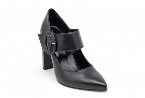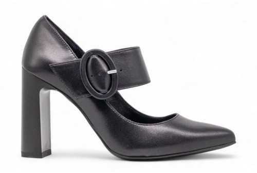 NERO GIARDINI decollete in pelle. Decollete a punta realizzata in pelle . Caratterizzata da cinturino frontale. Tacco a blocco. COLORE: nero
