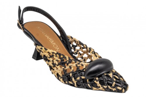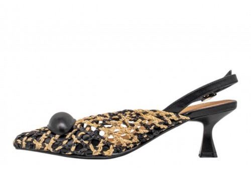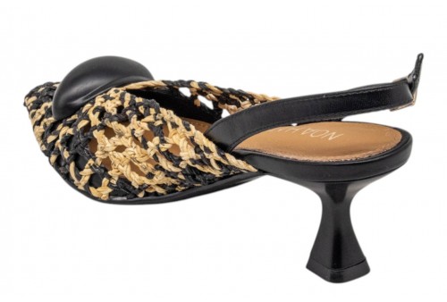 NOA HARMON slingback 10342-67 SWAN black-cuero. Slingback a punta realizzata in pelle intrecciata bicolore con accessorio sul davanti. Tacco a rocchetto. Plantare imbottito.
