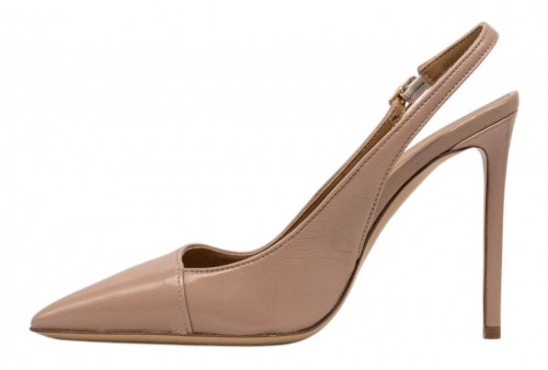 WO MILANO slingback 246 PITTI MANDORLA. Slingback a punta in pelle effetto lucido.Fondo in vero cuoio.Chiusura con cinturino con fibbia regolabile alla caviglia.Tacco a spillo.
