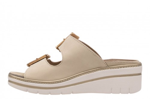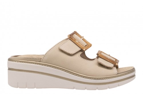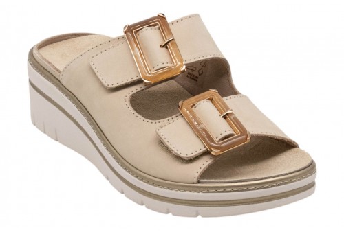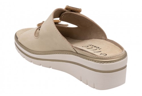 ELITE TOMASI CIABATTA PFA-ALEXIS NABUK PFF PANNA. Ciabatta con zeppa realizzata in morbida pelle con fasce regolabili con fibbia. Plantare estraibile.
