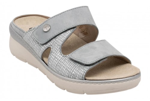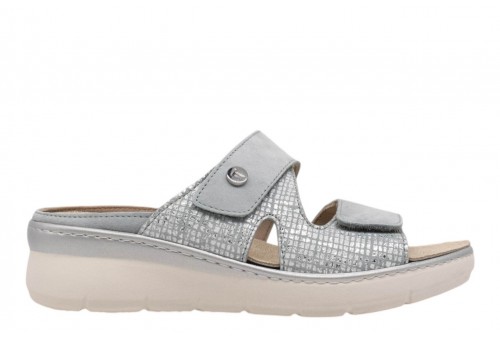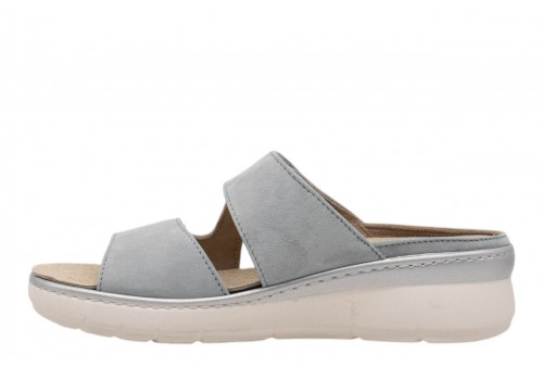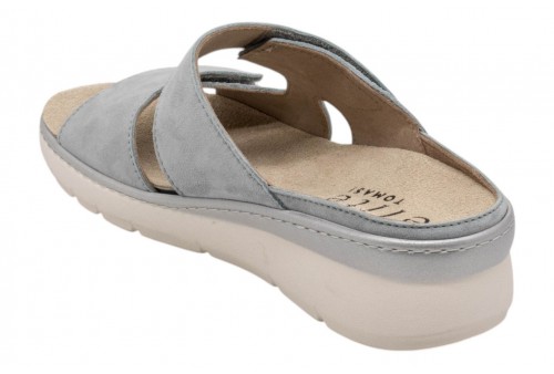 ELITE TOMASI ciabatta PFA-AVAYA CAMOSCIO PPF CELESTE. Ciabatta con zeppa realizzata in morbida pelle con fasce regolabili con strappo.